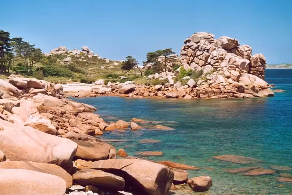 Dirigez-vous vers la côte nord de la Bretagne pour découvrir la fameuse Côte de Granit Rose, connue pour ses formations rocheuses roses uniques.