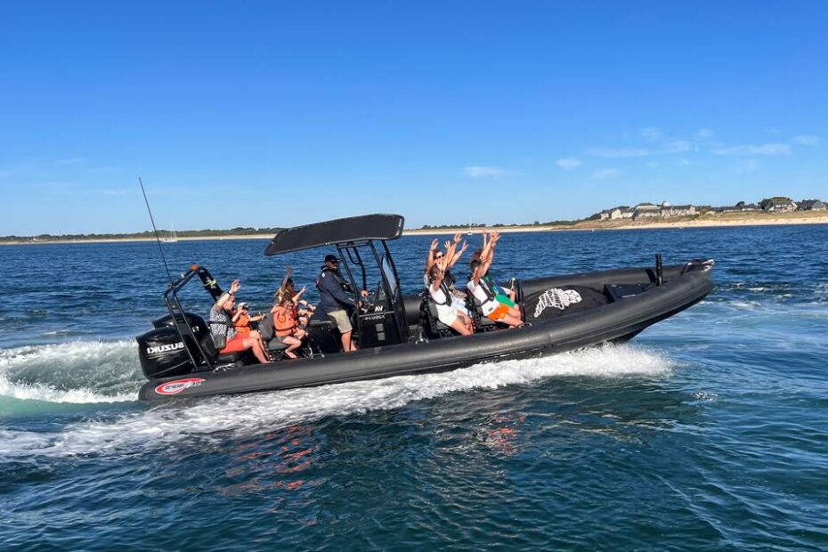 1h30 de balade guidée dans le Golfe du Morbihan en semi-rigide, entre découverte des îles et runs de vitesse.