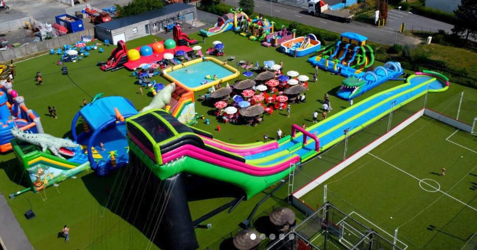 - Parc de structures gonflables : 21 installations variées (toboggans géants, montagnes molles, parcours d’obstacles, baby-foot humain et piscines à balles).