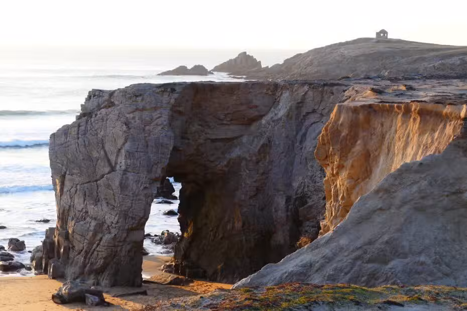 Si vous avez choisi de longer la côte sauvage, faîtes un arrêt par la pointe du Percho avant de vous rendre à l’arche de Port Blanc.
