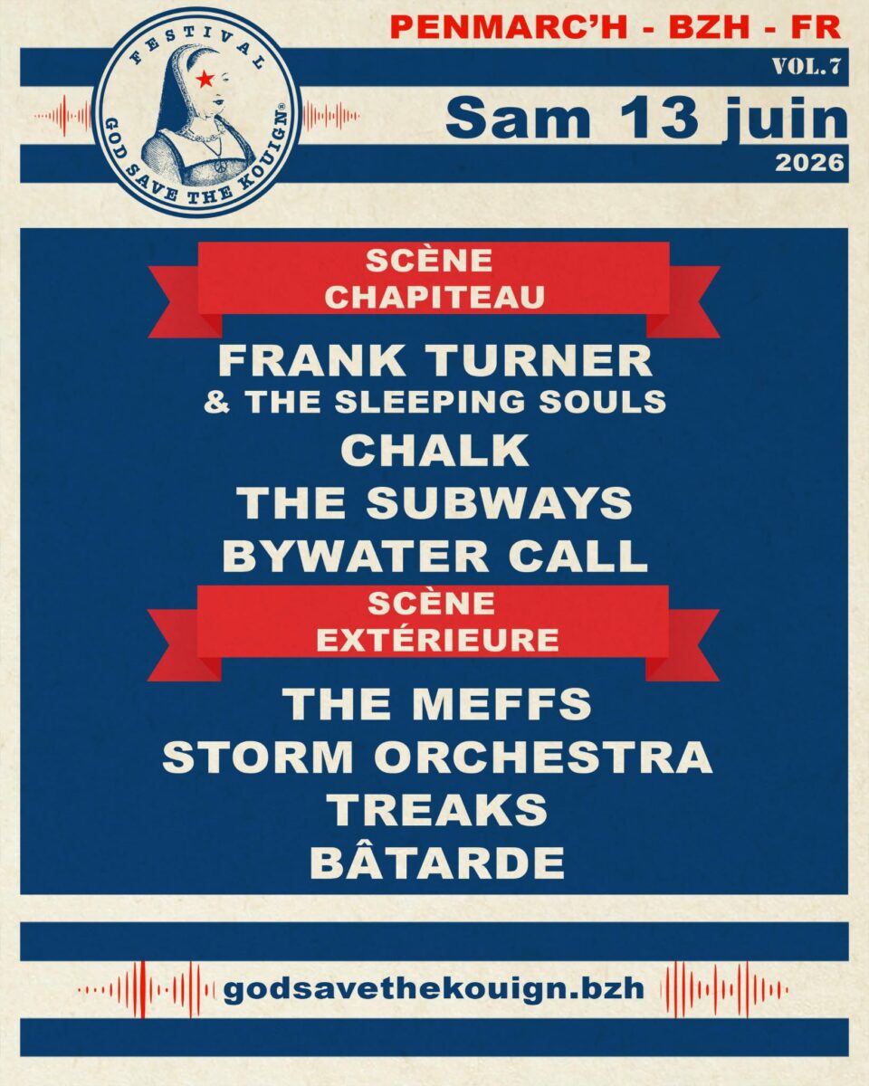 Le festival God Save The Kouign, édition 2026 (Volume 7), se tiendra les vendredi 12, samedi 13 et dimanche 14 juin 2026 au Stade Municipal de Penmarc’h (29).