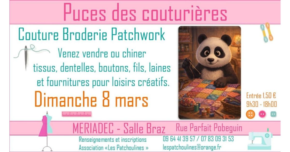 RDV aux Puces des couturières à Mériadec le 8 mars 2026.