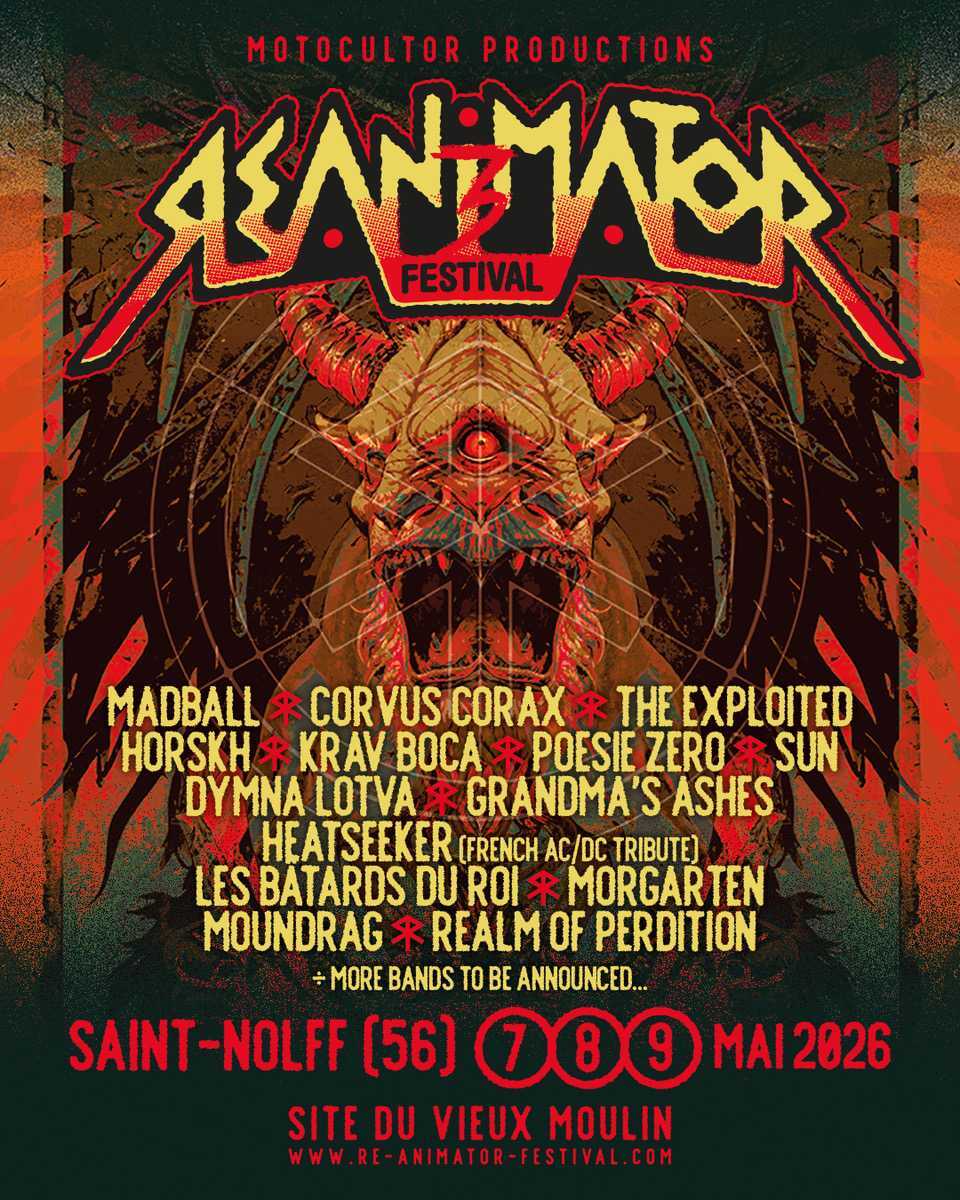 Le Re-Animator Festival vous attend les 7, 8 et 9 mai 2026 au Vieux Moulin à Saint-Nolff (56).