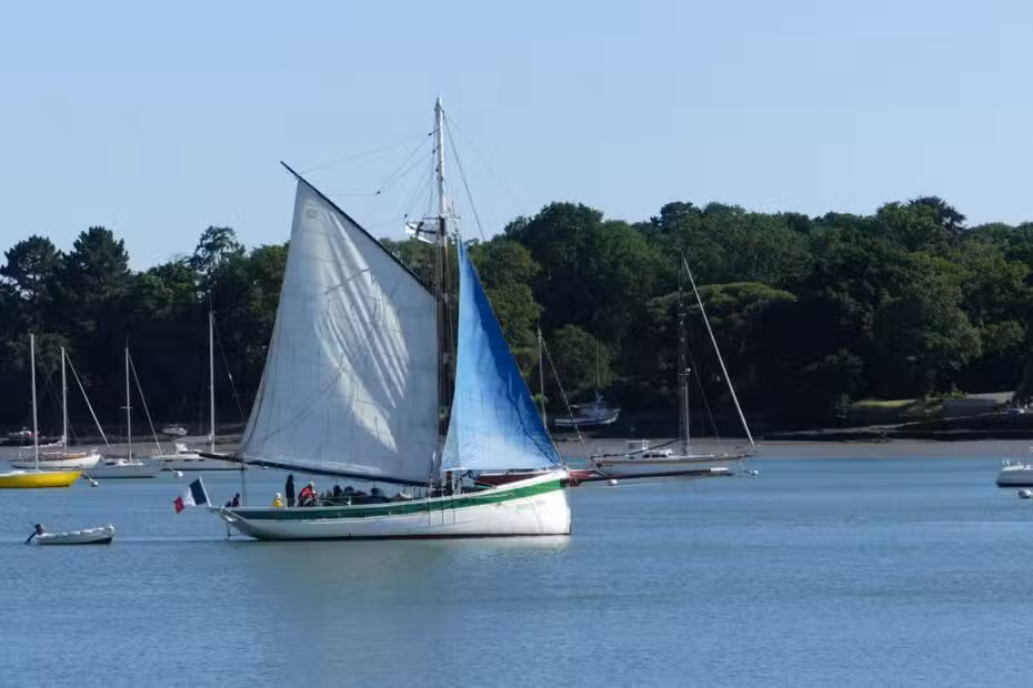 Ce voilier classé au Patrimoine Maritime est ancré à Port-Navalo, dans la presqu’île de Rhuys.