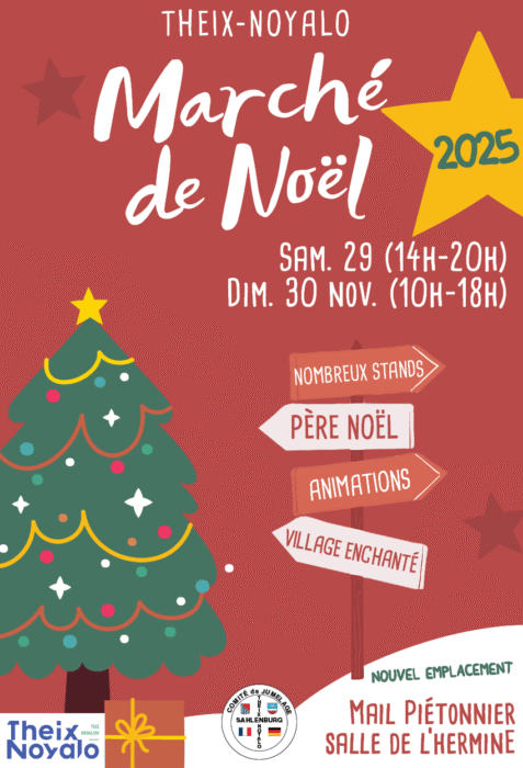 RDV à la Mairie de Theix-Noyalo les samedi 29 novembre (14h à 21h) et dimanche 30 novembre 2025 (10h à 18h)