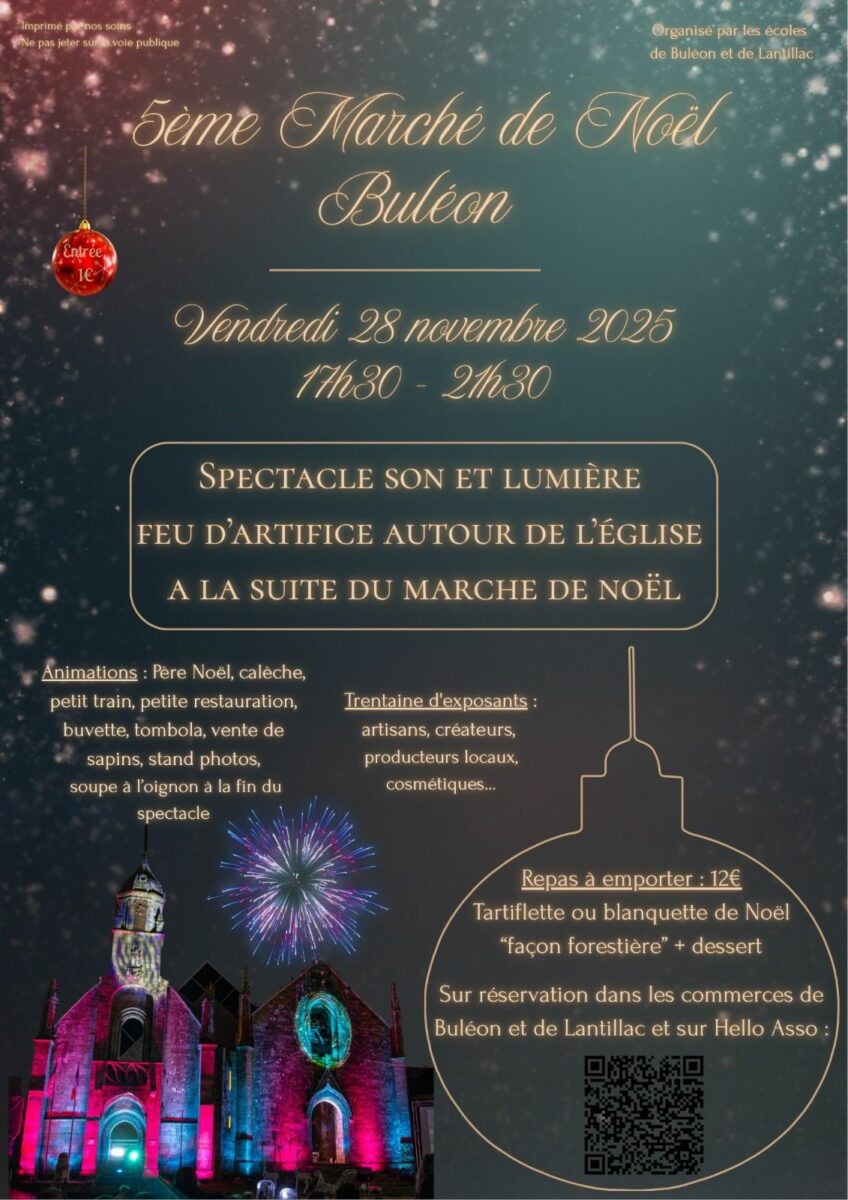 Marché de Noël de Buléon et feu d’artifice le vendredi 28 novembre 2025 de 17h30 à 21h30 - Elven